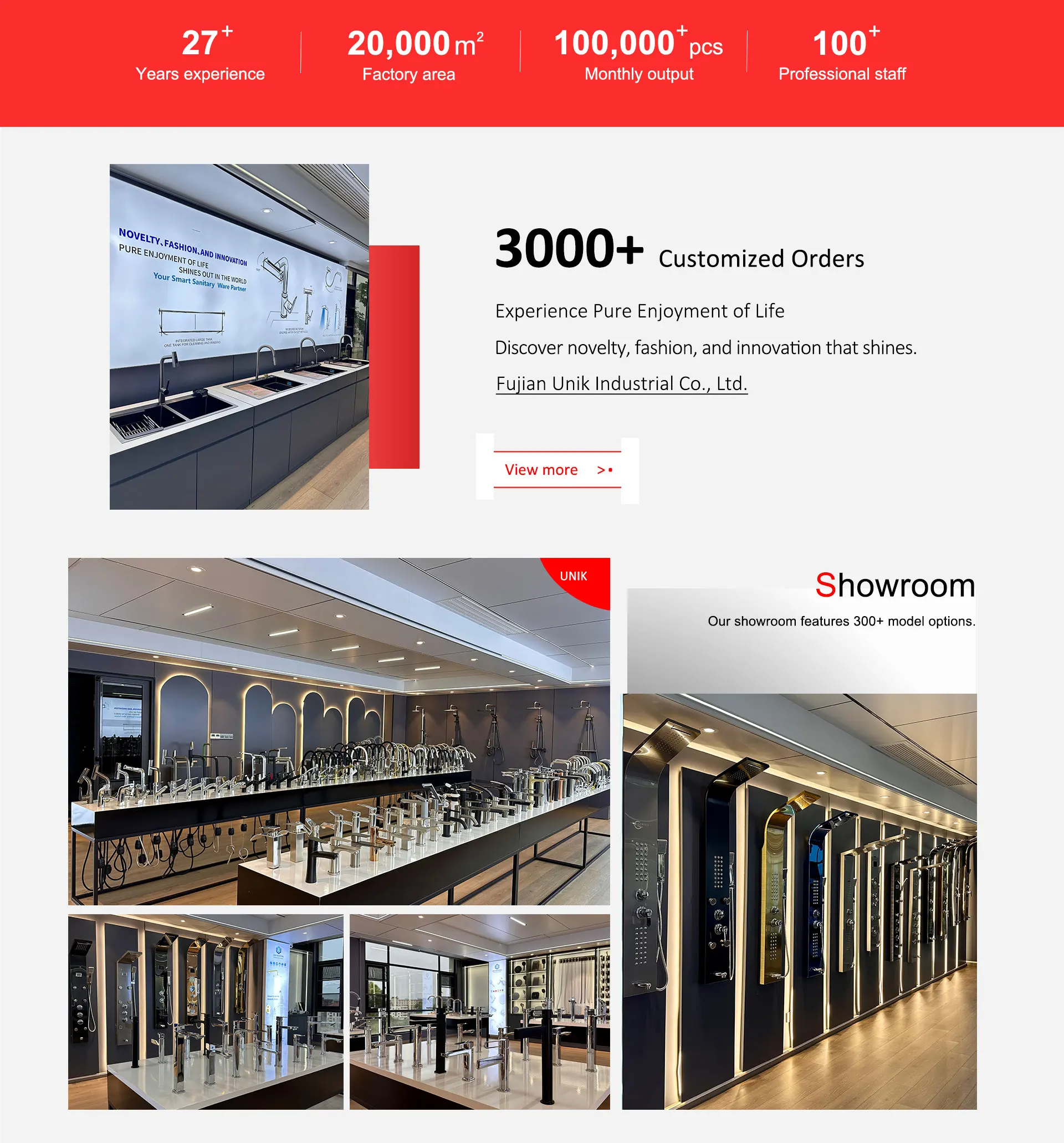 Fujian Unik Industrial Co., Ltd Fujian Unik Industrial Co., Ltd., established in 2003, is a trusted manufacturer of bathroom products in China. We specialize in shower sets, kitchen sinks, toilets, faucets, and spray guns, combining advanced CNC machining, laser engraving, and rigorous multi-stage testing to ensure durability, safety, and elegant design. Our 50,000㎡ factory uses automated production lines and meets ISO 9001 and CE standards, guaranteeing consistent quality. With strong R&D capabilities, we offer innovative OEM/ODM solutions tailored to global markets. As a Gold Supplier on Alibaba, we serve customers in over 50 countries with reliable performance and timely delivery. Choose Fujian Unik for quality, expertise, and partnership you can trust.